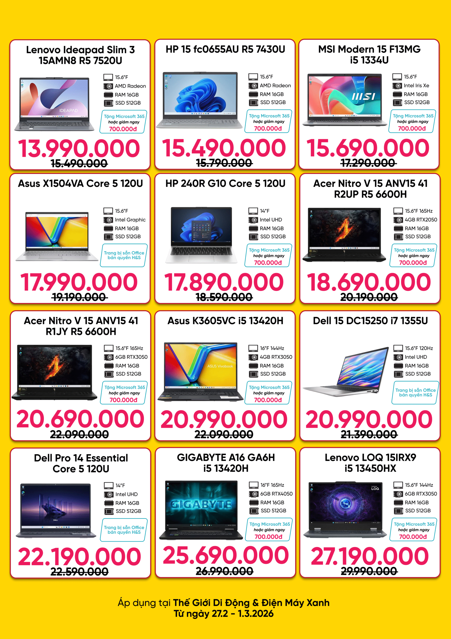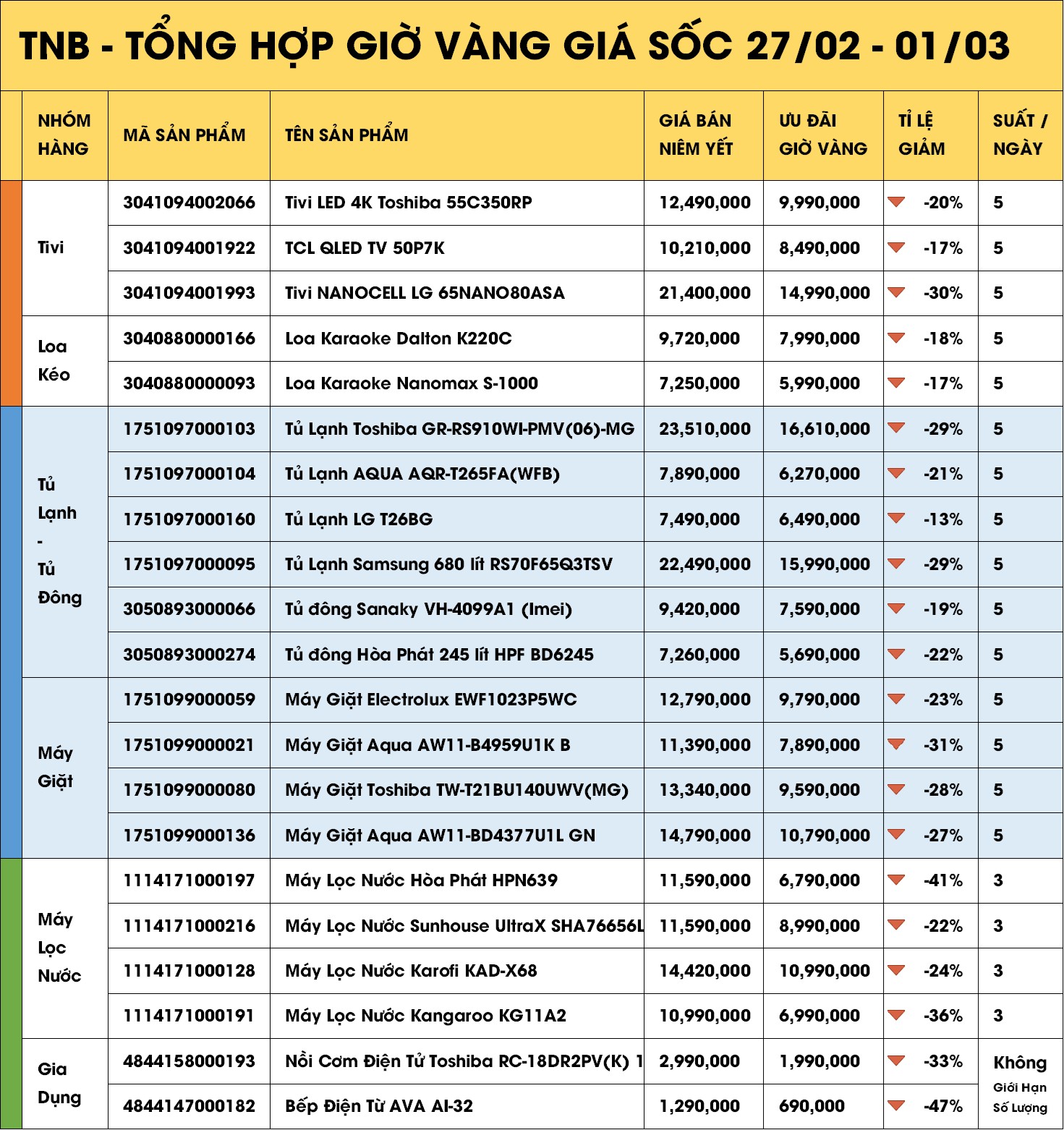 GIÁ SỐC CUỐI TUẦN : 27/02 – 01/03